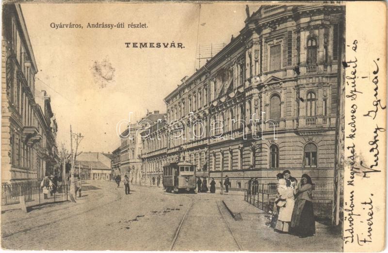 1905 Temesvár, Timisoara; Gyárváros, Andrássy út, villamos, / Fabric,...