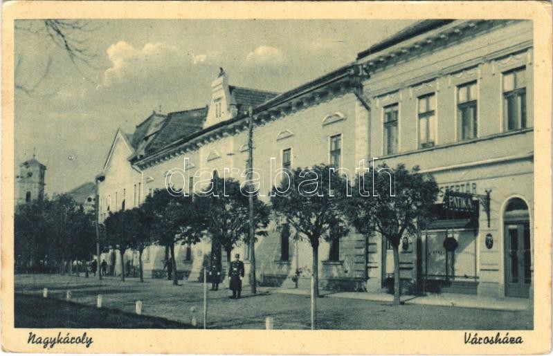 1943 Nagykároly, Carei; Városháza, gyógyszertár, patika / town hall, pharmacy