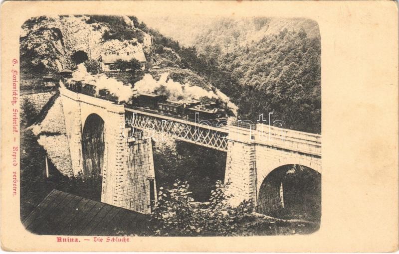 Anina, Oravica-Anina, Oravita-Anina; Vasúti hegyipálya, Zsittin-völgyi vasúti híd, viadukt, gőzmozdony. G. Florianschütz / mountain railway bridge, viaduct, locomotive (EK)