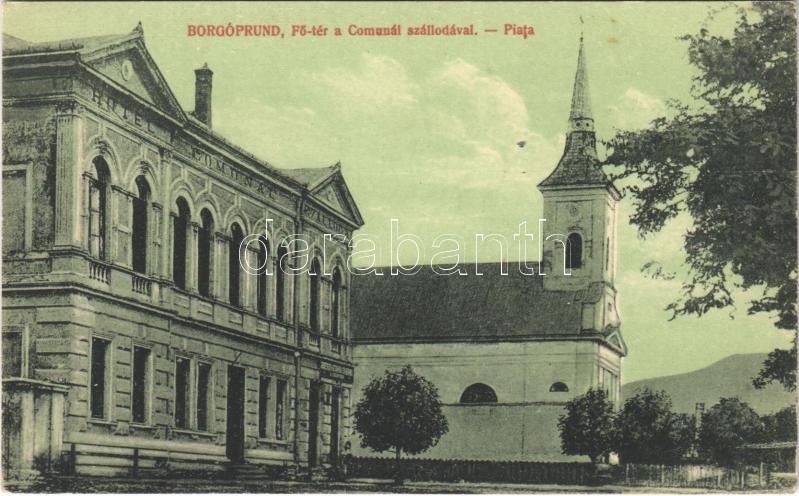 Borgóprund, Borgó-Prund, Prundu Bargaului; Fő tér, Comunál szálloda, t...