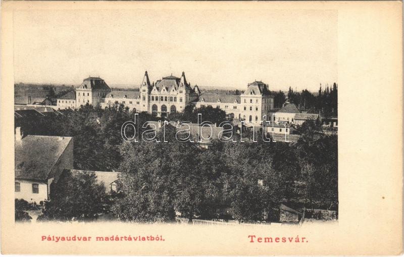 Temesvár, Timisoara; pályaudvar madártávlatból / railway station