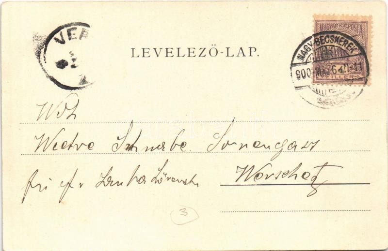 1900 Nagybecskerek, Zrenjanin, Veliki Beckerek; Dániel villa, Bega part, polgári iskola. Grosits J. kiadása / villa, riverside, school. Art Nouveau, floral