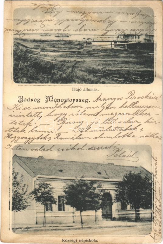 1905 Monostorszeg, Monostor, Backi Monostor; hajóállomás, községi népiskola / port, school (EB)