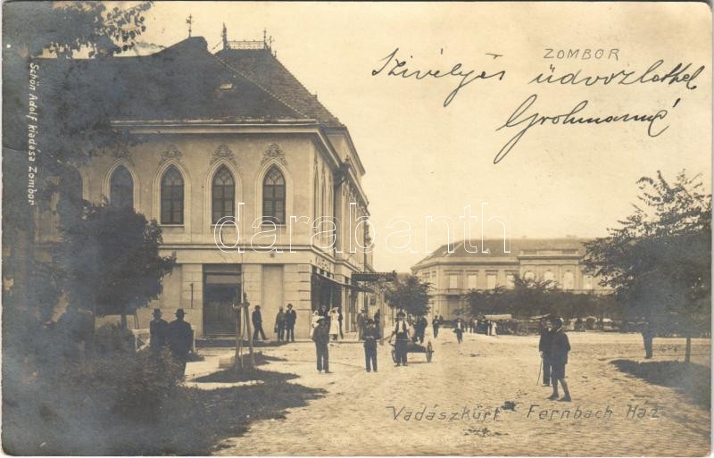 https://www.darabanth.com/en/395-Online-auction/395.0/Postcards/Vojvodina~1000010/1906-Zombor-Sombor-ter-Vadaszkurt-Fernbach-haz-kavehaz-es-szalloda-piac-Schon-Adolf-~II2398101