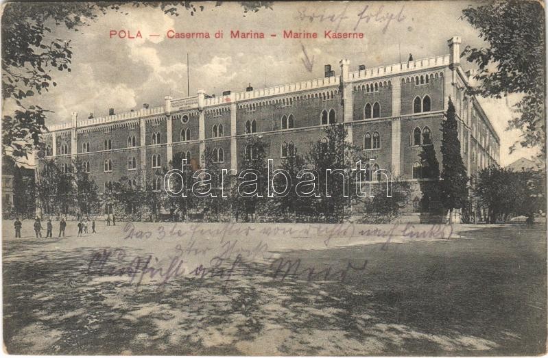 https://www.darabanth.com/en/395-Online-auction/395.0/Postcards/Warships~1000071/1912-Pola-Pula-Caserma-di-Marina-Marine-Kaserne-Austro-Hungarian-Navy-KuK-Kriegsmarine-ma~II2395424