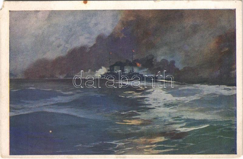 1917 Sultan Yavuz Selim (ex SMS Goeben) treibt die fliehende russische Flotte vor sich her. Offizielle Postkarte des Österreichischen Flottenvereines zu Gunsten des Kriegsfürsorgeamtes, des Kriegshilfsbüros und des Roten Kreuzes Nr. F. 45. / WWI Austro-Hungarian Navy art postcard, K.u.K. Kriegsmarine, support fund, Ottoman Navy battlecruiser s: Harry Heusser (EM)