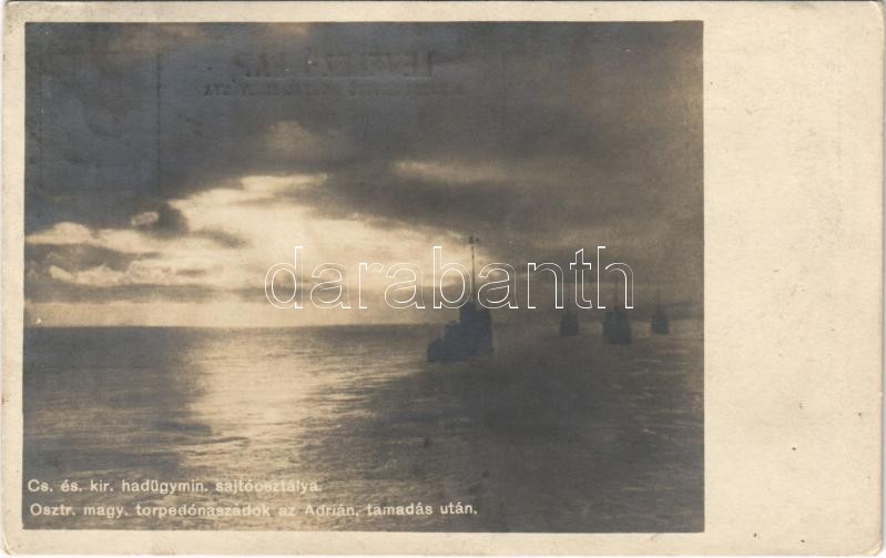 Osztrák-magyar torpedónaszádok az Adrián támadás után. Cs. és kir. had... https://www.darabanth.com/en/395-Online-auction/395.0/Postcards/Warships~1000071/Osztrak-magyar-torpedonaszadok-az-Adrian-tamadas-utan-Cs-es-kir-hadugyminiszterium-sajt~II2395357