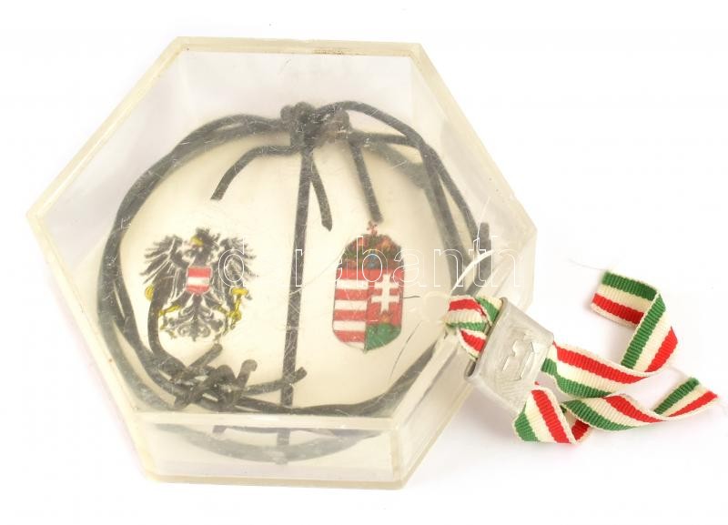 1989 A Magyar-Osztrák határon húzódó vasfüggöny egy darabja, magyar szalaggal, plombált műanyag tokban, 9×10 cm
