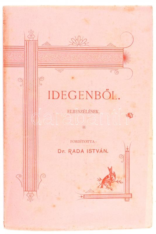 Idegenből. Elbeszélések. Ford.: Rada István. Veszprém, 1896, Egyházmegyei Könyvnyomda. Kiadói illusztrált papírkötés, jó állapotban.