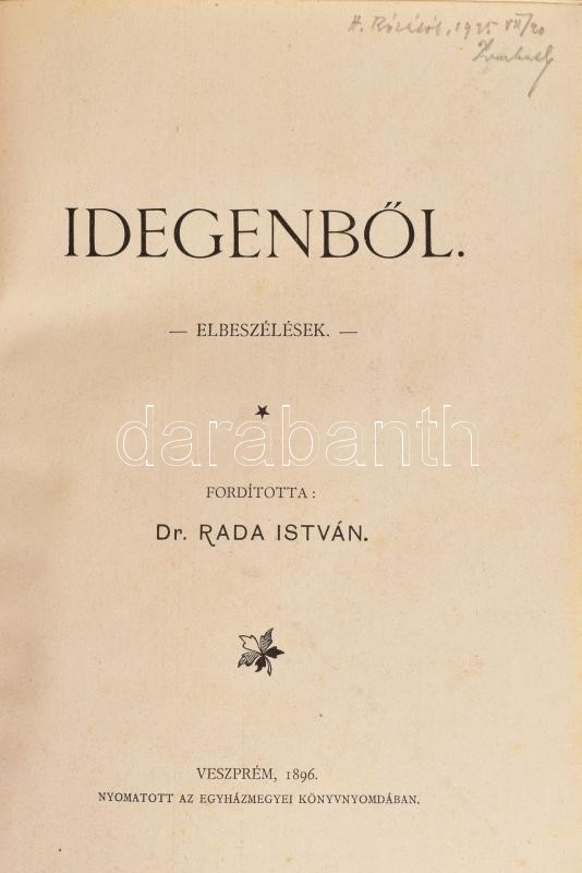 https://www.darabanth.com/en/396-Online-auction/396.0/Books/Books-Other-rarities~1000024/Idegenbol-Elbeszelesek-Ford-Rada-Istvan-Veszprem-1896-Egyhazmegyei-Konyvnyomda-Kiado~II2406258