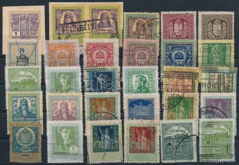 1903-1930 30 db illeték és forgalmi illeték bélyeg,közte kivágáson is