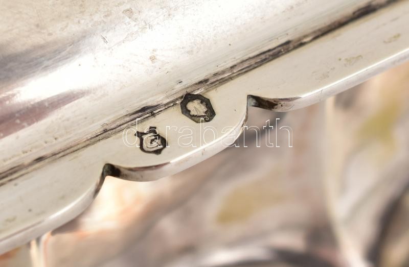 Ezüst (Ag) hólyagos ládika fa betéttel, jelzett, kis elszíneződéssel, ...
