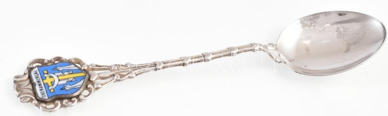 Ezüst(Ag) "Oberammergau" zománcozott címeres kanál, jelzett, h: 9,2 cm...