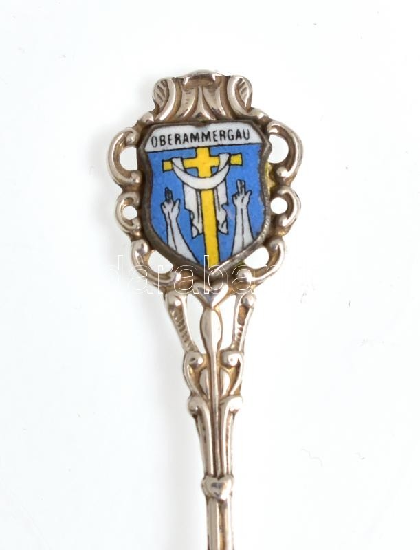 Ezüst(Ag) "Oberammergau" zománcozott címeres kanál, jelzett, h: 9,2 cm, bruttó: 6,6 g