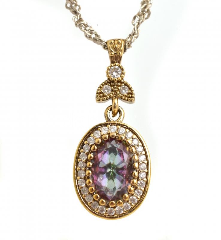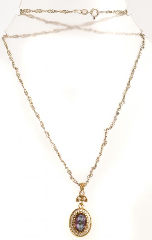 Ezüst(Ag) csavart nyaklánc, köves medállal, jelzett, h: 46 cm, bruttó:...