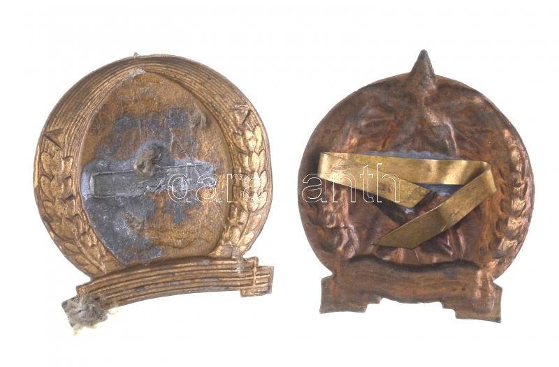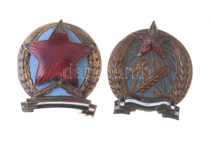 ~1950. Rákosi-címeres sapkajelvény (45x37mm) + ~1960-1970. "Munkásőr sapkajelvény" zománcozott fém sapkajelvény(43x48mm) T:2- durva zománchibák, utóbbi rögzítőpántok nélkül