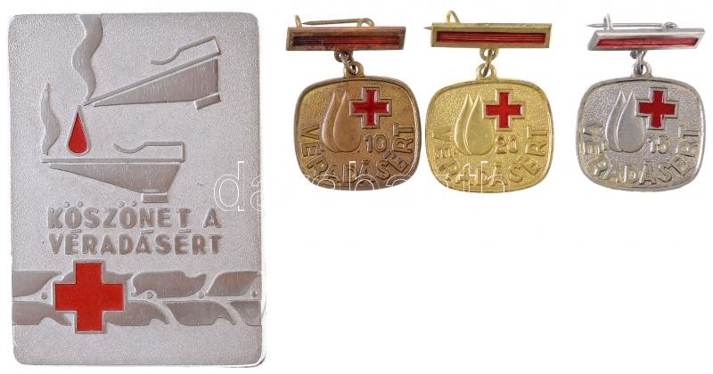 ~1970. "Véradásért" 4xklf plakett és jelvény T:2,2-