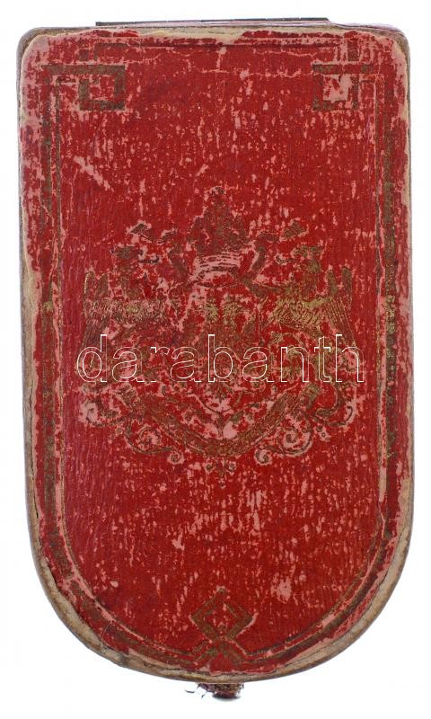 Description: 1890. "Bronz Katonai Érdemérem a katonai érdemkereszt szalagján" aranyozott Br kitüntetés mellszalagon, eredeti, kopott címeres tokban T:2 / Hungary 1890. "Bronze Military Merit Medal on a war ribbon (Signum Laudis)" gold plated Br decoration with ribbon, in original, worn maker's case C:XF NMK 245.