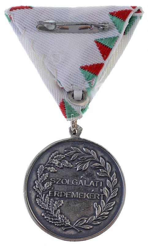 Description: 1992. "Szolgálati Jel (érdem után) II. osztálya" ezüstözött tombak kitüntetés mellszalagon, eredeti tokban T:1-