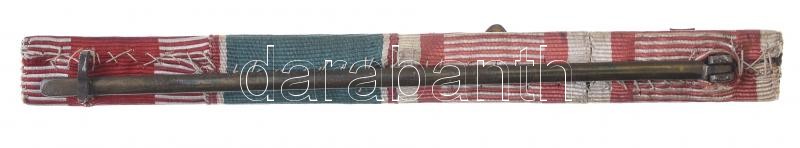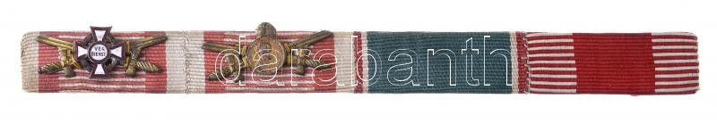 4db szalagsáv összefűzve: 1916. "Katonai Érdemkereszt III. osztálya hadidíszítménnyel, kardokkal" + 1917. "Bronz Katonai Érdemérem a katonai érdemkereszt szalagján, kardokkal" + 1922. "Magyar Koronás Érem (Signum Laudis)" valamely fokozatához katonai tagozatához + "Károly Csapatkereszt" kitüntetésekhez