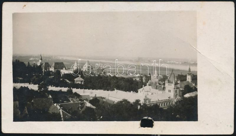1932 Budafok, látkép az "olajhegyről", hátoldalon feliratozott fotó, alján lyukkal, felületén törésnyom, 5×9 cm