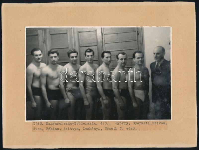 1948 Magyarország-Svédország 4:0 vízilabda mérkőzés, kartonra ragasztott fotó, 11×17,5 cm