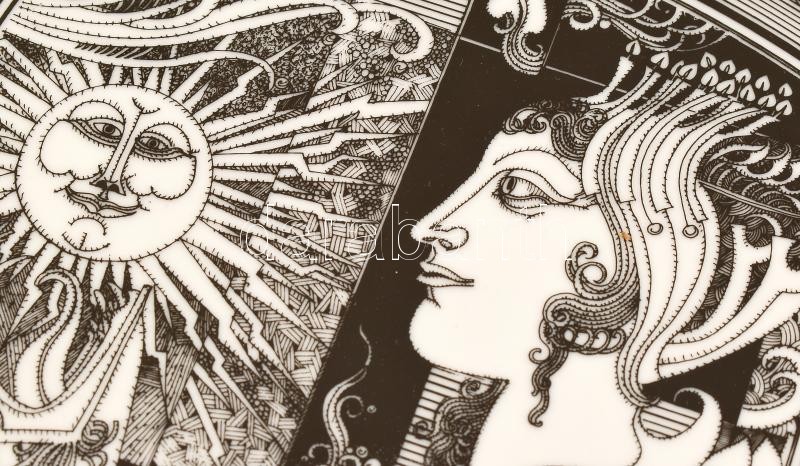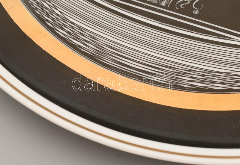 Hollóházi Szász Endre által tervezett dekorral díszített porcelán tány...
