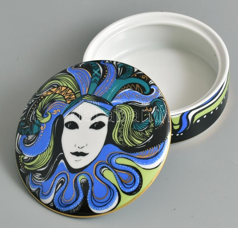 Hollóházi Vészabó Noémi porcelán bonbonier, matricás, jelzett, hibátla...