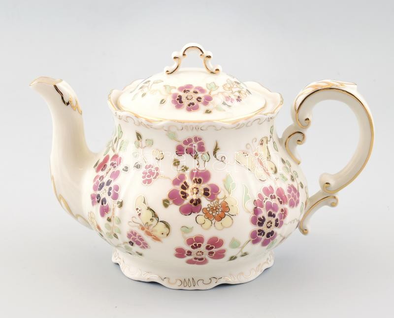 Zsolnay pillangó mintás teás kiöntő. Kézzel festett, jelzett, hibátlan.
