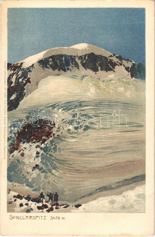 Stubaital (Tirol), Sonklarspitze / mountain peak, hikers. Kuenstlerpostkarte No. 1533. von Ottmar Zieher Kunstanstalt litho s: Schmidt (fl)