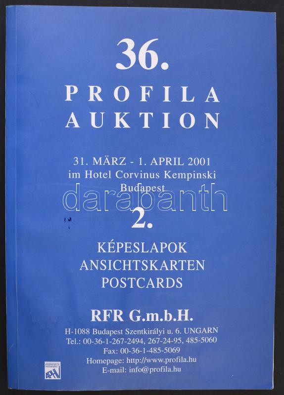 36. Profila Auktion 2. Képeslapok - aukciós katalógus 424 oldallal. 2001