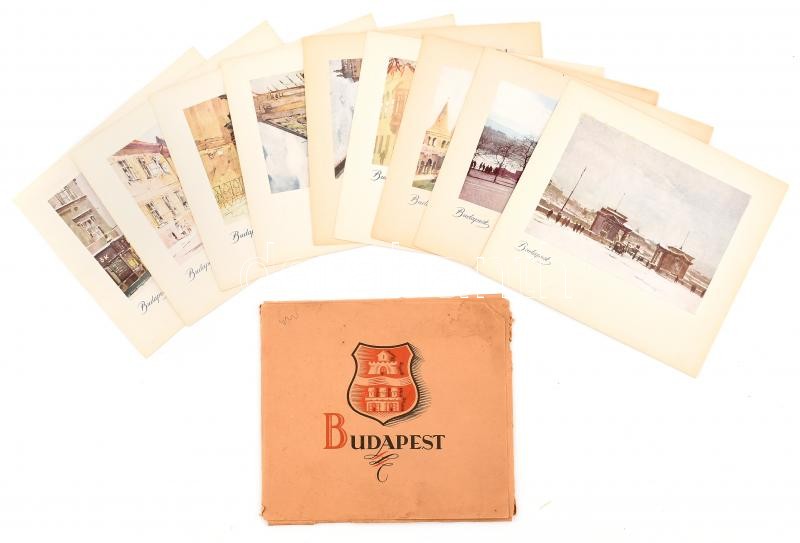 cca 1930 Budapest 9 db festmény reprodukció mappában 21x20 cm