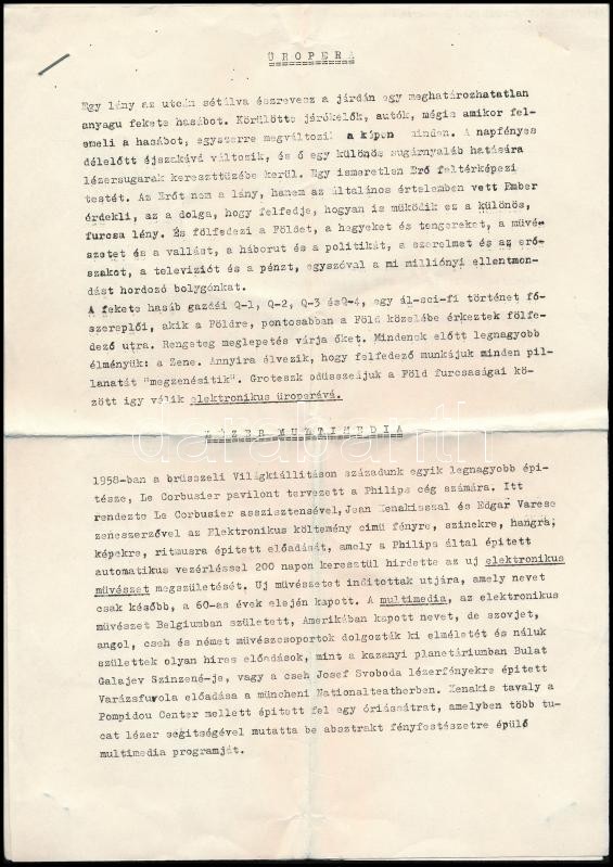 cca 1980 Űropera írta és rendezte: Hegedős László. Műsorfüzet + hozzá való magyarázó gépirat.