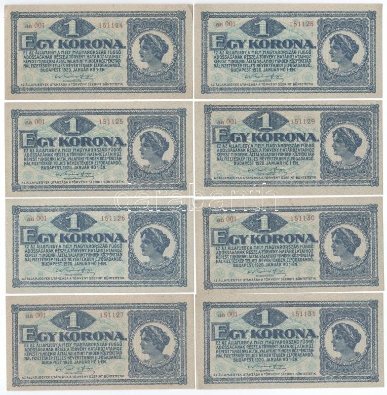 https://www.darabanth.com/en/397-Online-auction/397.0/Numismatics/Hungarian-Banknotes~1500007/1920-1K-8x-sorszamkovetok-TI-I-Adamo-K4~II2415851