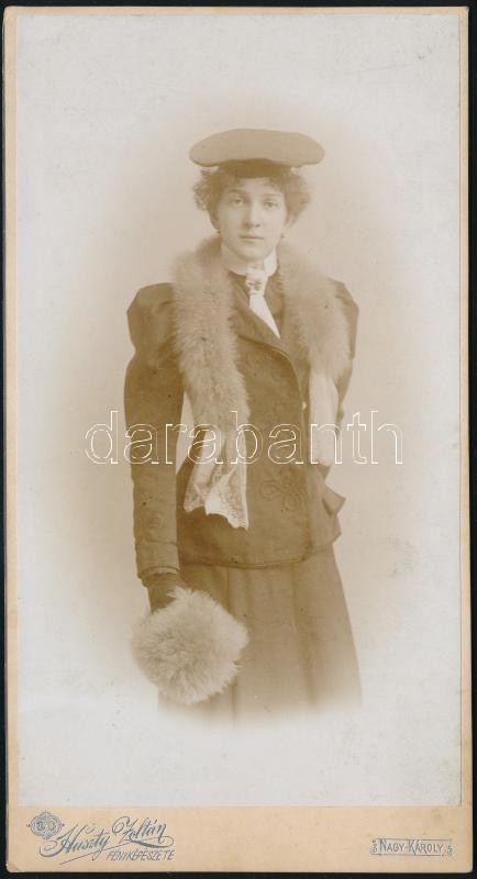 cca 1900 Hölgy szőrmével, keményhátú fotó Huszty Zoltán nagykárolyi mű...