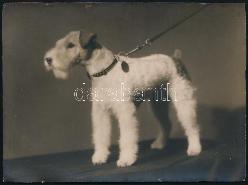 cca 1920-1930 Sziszi, díjnyertes drótszőrű foxi, kartonra ragasztott fotó, vágott szélek, 13×18 cm