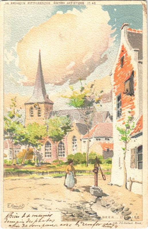 1904 Dilbeek, L'Église / church. La Belgique Pittoresque Édition Artistique 17-43. Lith. J. L. Goffart litho s: F. Ranot (EK)