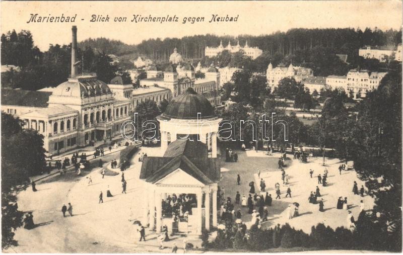 Marianske Lazne, Marienbad; Blick von Kirchenplatz gegen Neubad / church, spa, bath