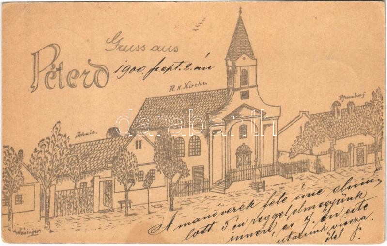 https://www.darabanth.com/en/397-Online-auction/397.0/Postcards/Hungary~1000004/1900-Bakonypeterd-Peterd-Romai-katolikus-templom-iskola-es-plebania-Kezzel-rajzolt-s-Wo~II2419548