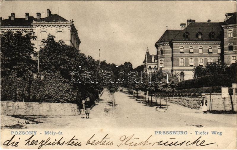 1911 Pozsony, Pressburg, Bratislava; Mély út / Tiefer Weg / street vie...