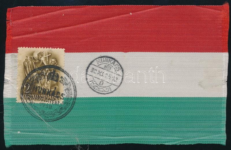 1938 Munkács visszatért nemzeti színű szalag, bélyeggel, bélyegzéssel