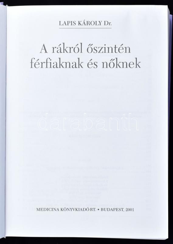Lapis Károly: A rákról őszintén férfiaknak és nőknek. Bp., 2001, Medicina. Kiadói kartonált papírkötés.