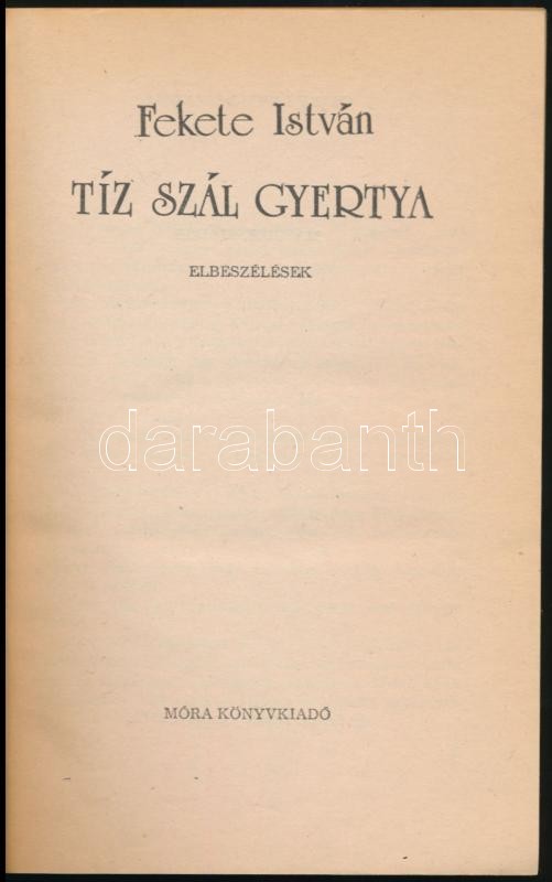 https://www.darabanth.com/en/398-Online-auction/398.0/Books/Books-Other-rarities~1500020/Fekete-Istvan-Tiz-szal-gyertya-Elbeszelesek-Csaky-Lajos-rajzaival-Bp-1985-Mora-Kiado~II2430534