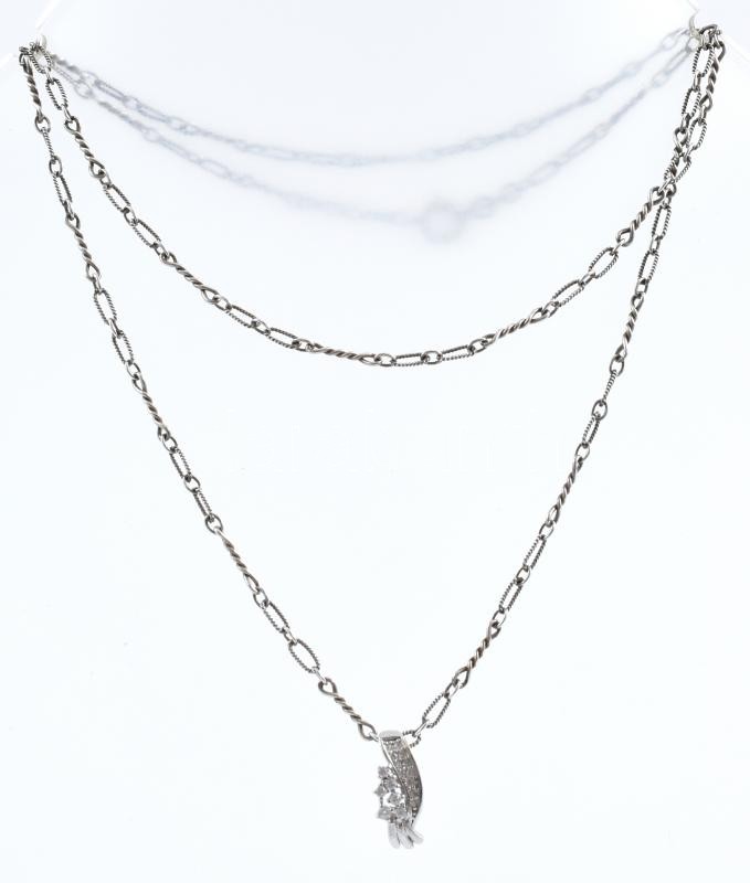 Ezüst(Ag) figaro nyaklánc, köves függővel, jelzett, h: 60 cm, 1,6×0,7 ...