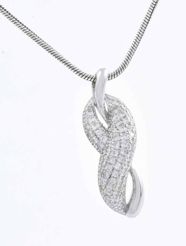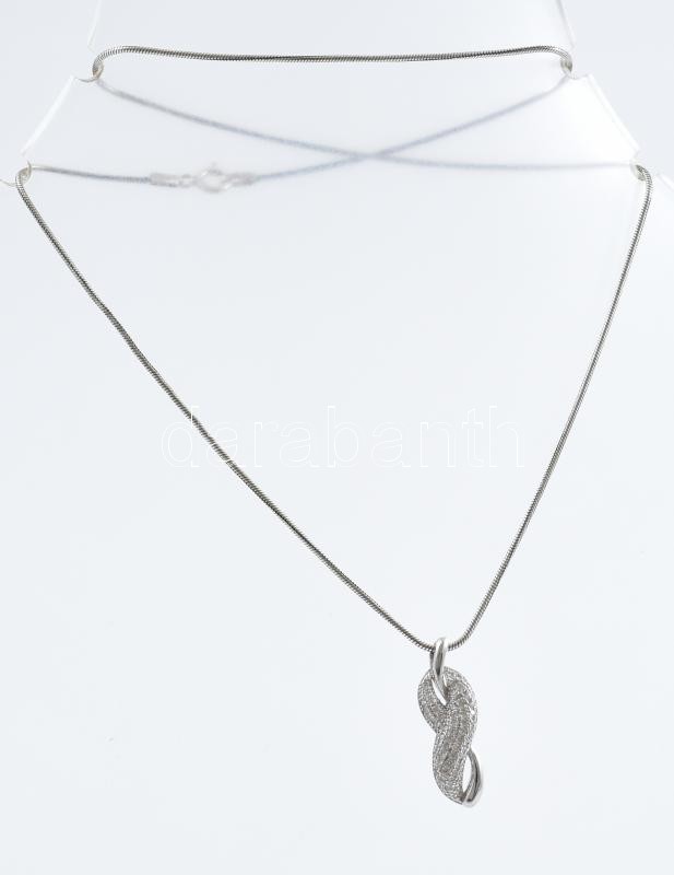 Ezüst(Ag) kígyó nyaklánc, csavart köves függővel, jelzett, h: 45 cm, 2...