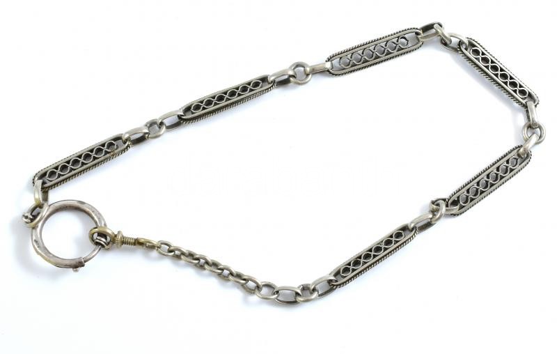 Ezüst(Ag) zsebóralánc, jelzés nélkül, h: 33 cm, nettó: 20,6 g
