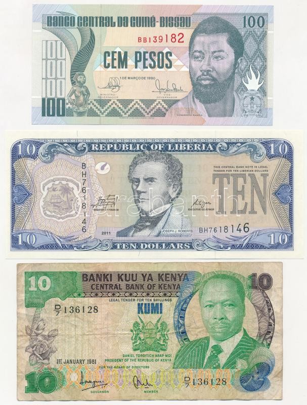 https://www.darabanth.com/en/398-Online-auction/398.0/Numismatics/Worldwide-banknotes~2000013/Vegyes-Bissau-Guinea-1990-100P-plus-Kenya-1981-10K-plus-Liberia-2011-10USD-TI-III-Mixed-Bissau-Guine~II2431921