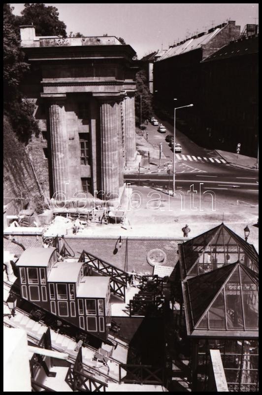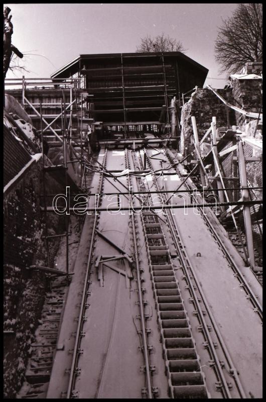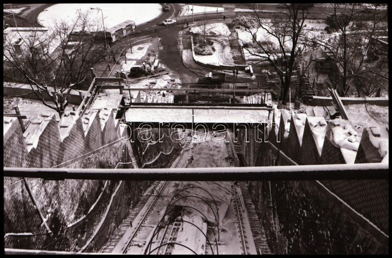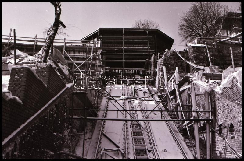 1986 Budapest, a budai sikló építése, környezeti városképpel együtt, 42 db vintage NEGATÍV, 24x36 mm