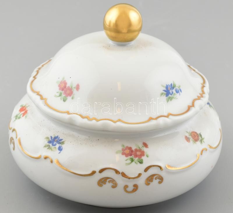 Wallendorf virágmintás porcelán bonbonier, részben kézzel festett, jel...