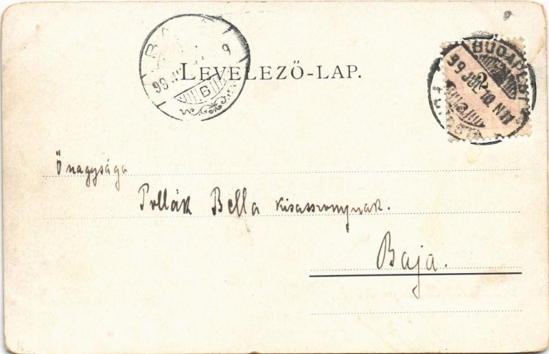 1899 Budapest V. Károly körút, üzletek, villamos. Schmidt Edgar kiadása (kopott sarkak / worn corners)